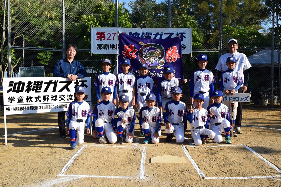 決勝戦は堅い守りと卒のない野球で勝ちあがった天妃カープと、全試合を接戦で制し勢いに乗る弁ヶ岳ファイターズの顔合わせとなり、試合は初回から天妃カープの打線が爆発。投げては堅い守りで無失点の10対0で天妃カープが第19回沖縄ガス杯の優勝を飾りました。